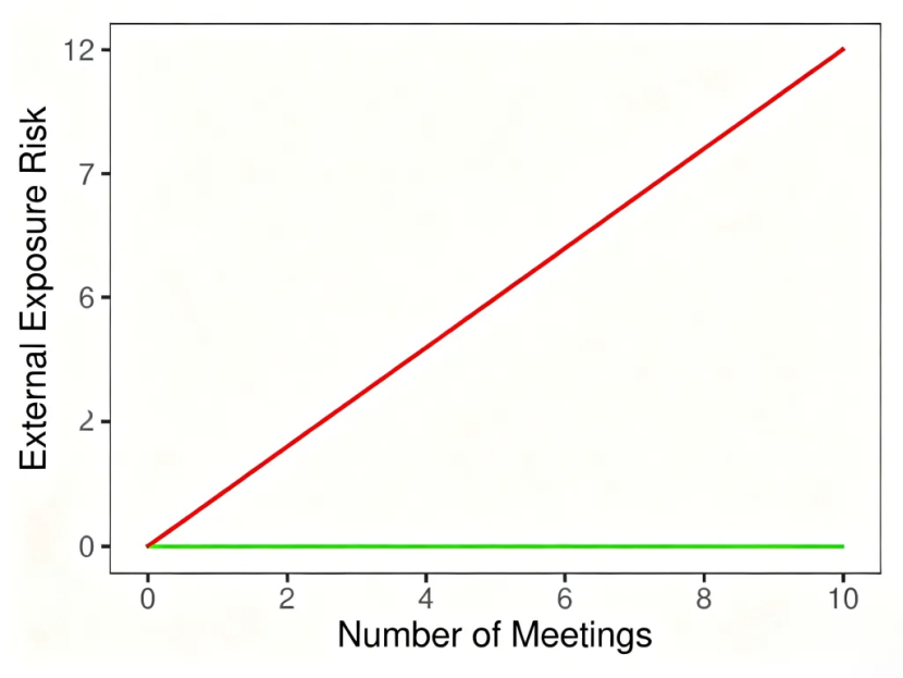 · More meetings mean more data transmitted and processed externally.